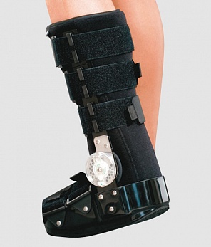 Ортез Orlett на голеностопный сустав с регулятором объёма движения стабилизирует и разгружает голеностопный сустав. При необходимости позволяет полностью иммобилизовать голеностопный сустав или увеличить объем сгибания-разгибания (шагом в 10 градусов), сохраняя боковую стабилизацию. Конструкция ортеза позволяет иммобилизовать сустав в положении подошвенного сгибания и тыльного сгибания (при повреждениях ахиллова сухожилия). Перекат подошвы обеспечивает возможность физиологичной походки. Подушки-подпяточники снижают ударные нагрузки на голеностопный сустав и амортизируют при ходьбе.